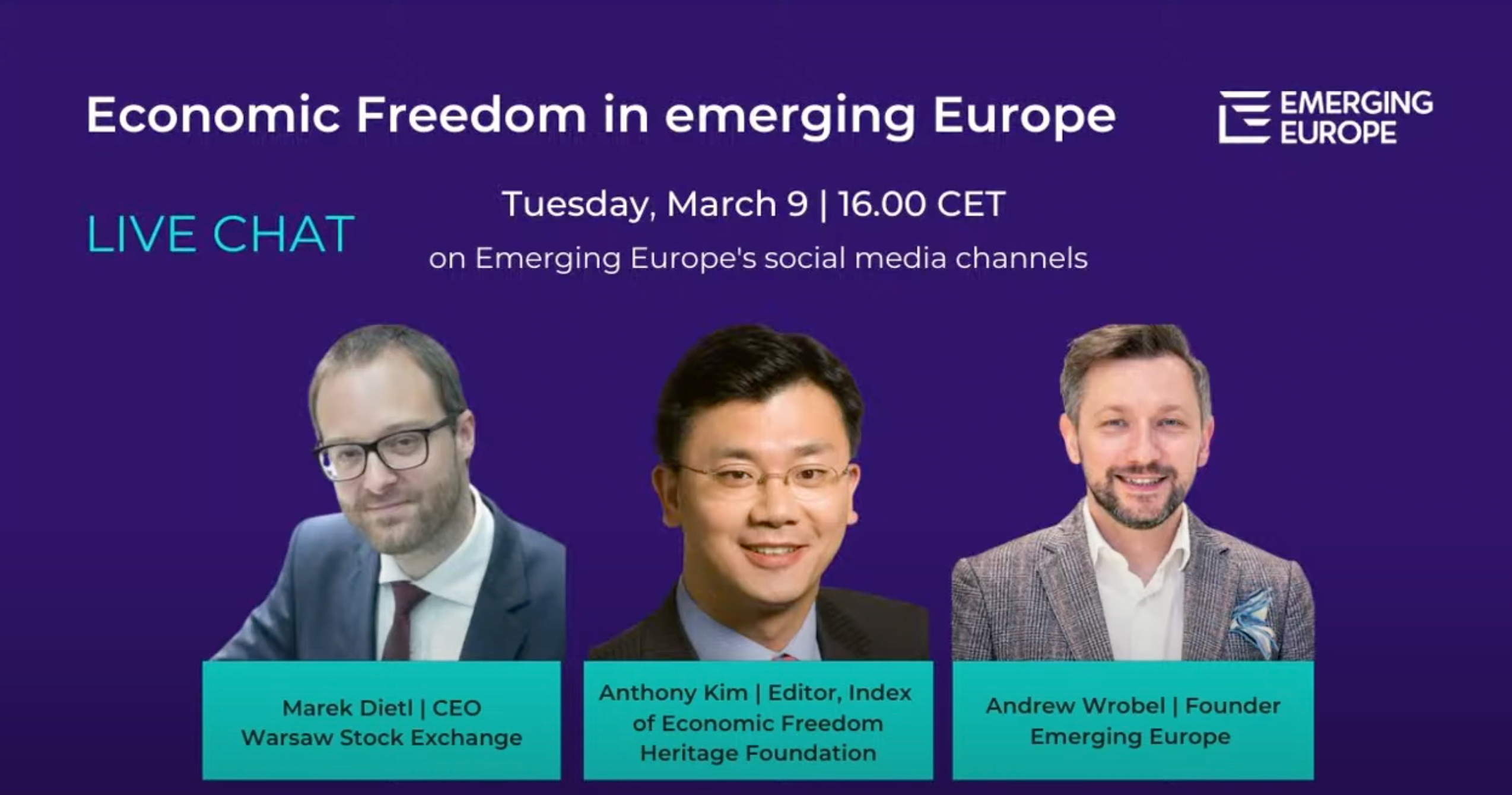 I hosted an online discussion about economic freedom across the emerging Europe region with • Anthony Kim, Research Manager and Editor of the Index of Economic Freedom, Davis Institute for National Security and Foreign Policy, Heritage Foundation and Marek Dietl, CEO, Warsaw Stock Exchange and an economist.